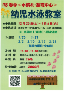 ★☆★春季幼児水泳教室開催いたします(^O^)/★☆★