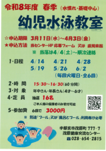 ★☆★令和8年度 春季幼児水泳教室開催いたします(^O^)/★☆★
